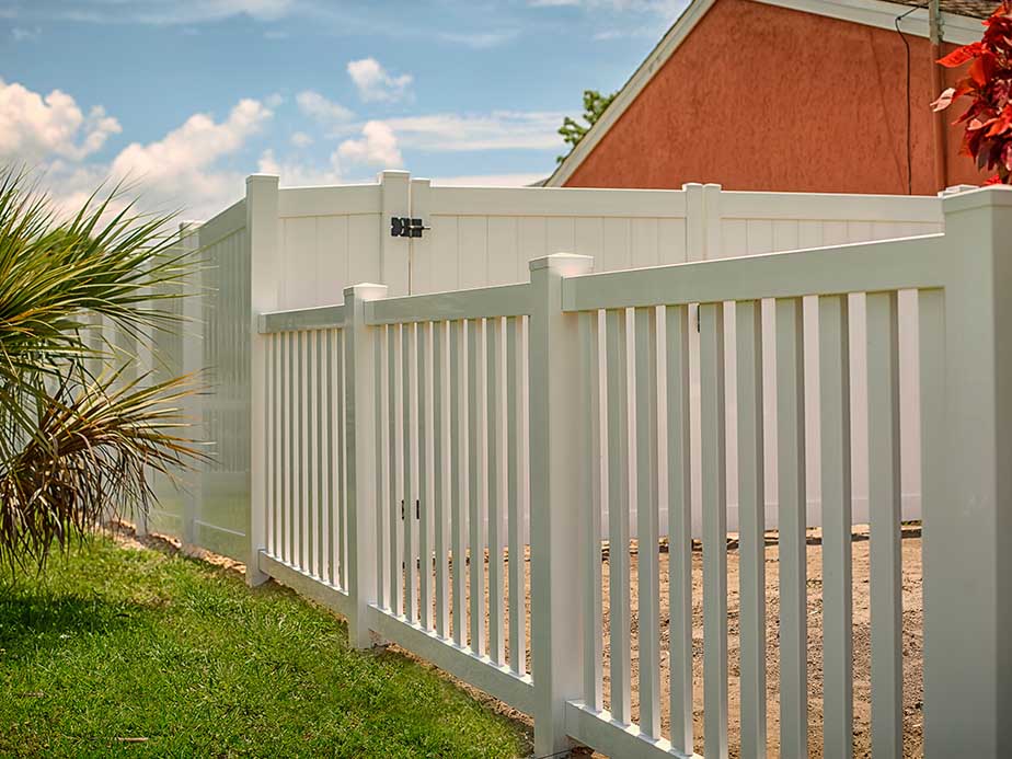 Elevate your outdoor space with vinyl fences, which offer a stylish, low-maintenance alternative that resists wear and tear, rot, and pests, and is available in an array of designs to suit any property.